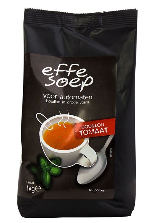 Effe Soep tomaat is een frisse tomatensoep met croutons, pandvermicelli en een vleugje basilicum.
