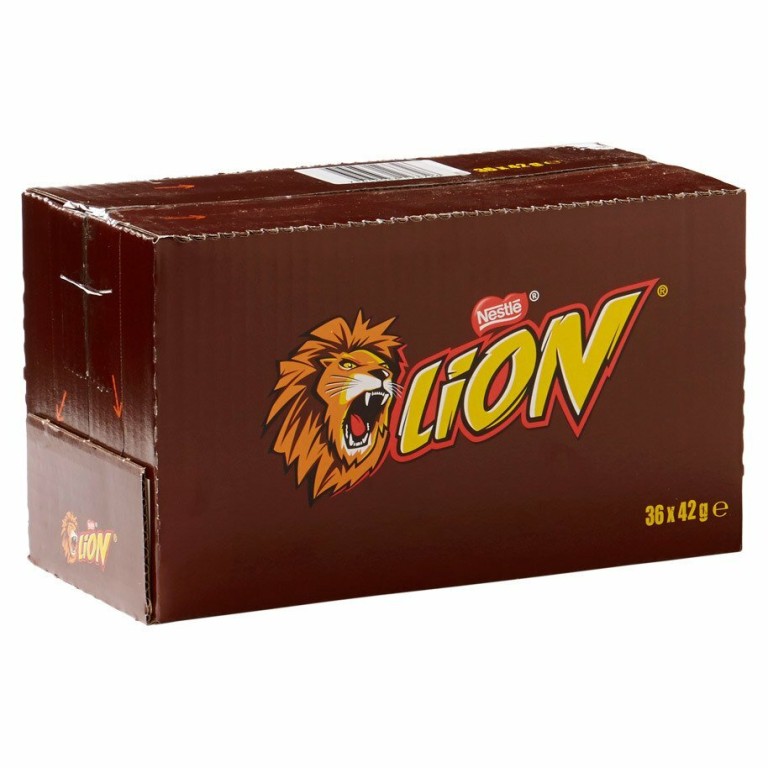 Stevige chocolade reep met een ruw, stoer uiterlijk. De combinatie van chocola, karamel en krokante granen geeft Lion een stevige bite.